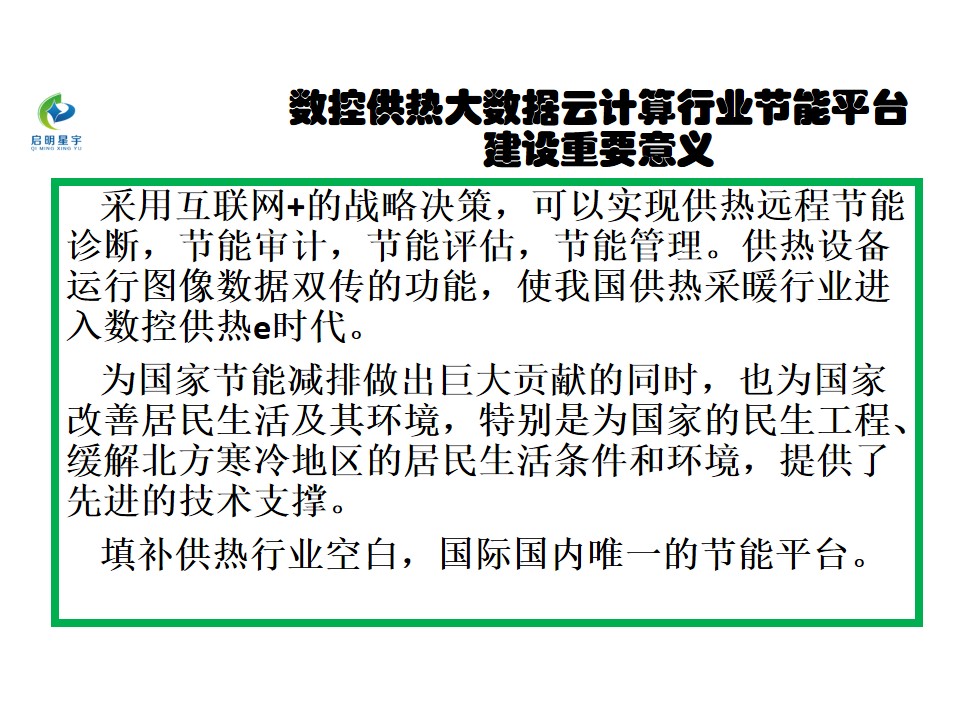 啟明星宇節(jié)能科技股份有限公司,啟明星宇,數控供熱,數控供熱大數據云計算行業(yè)節(jié)能服務平臺,節(jié)能服務,暖氣醫(yī)院,專利節(jié)能,數控供熱,云端服務,節(jié)能交通信號燈