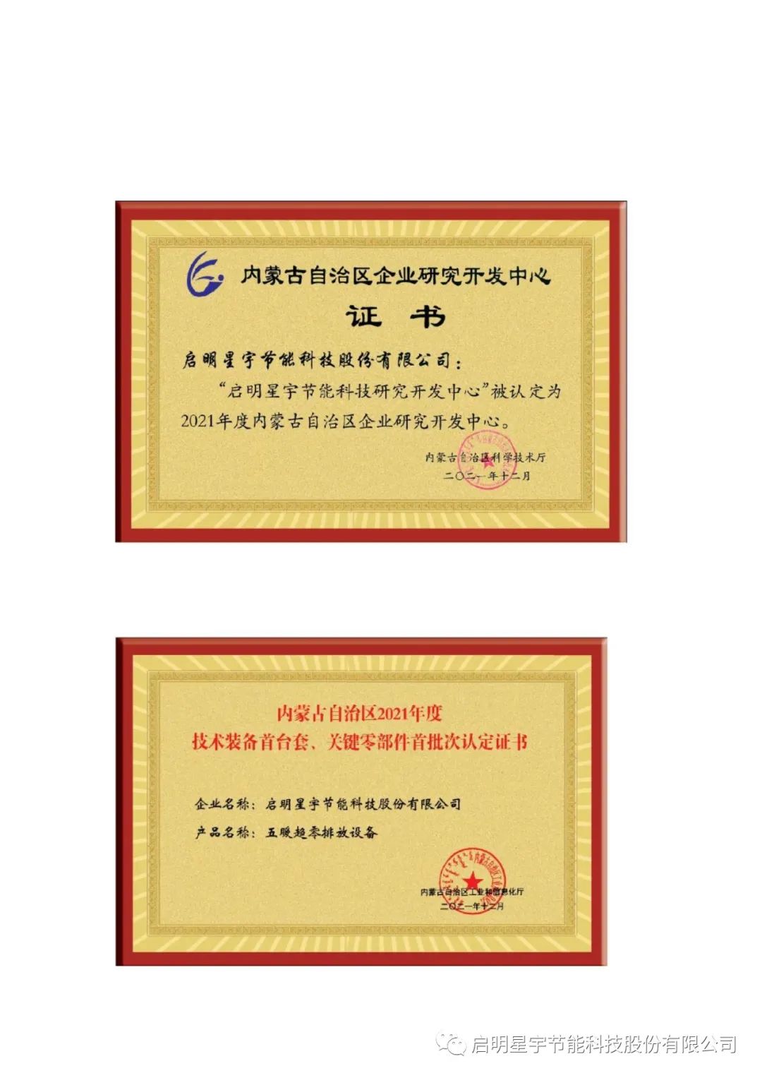 2021年12月評為《內蒙古自治區技術裝備《首臺套、關鍵零部件首批次》雙首認定》